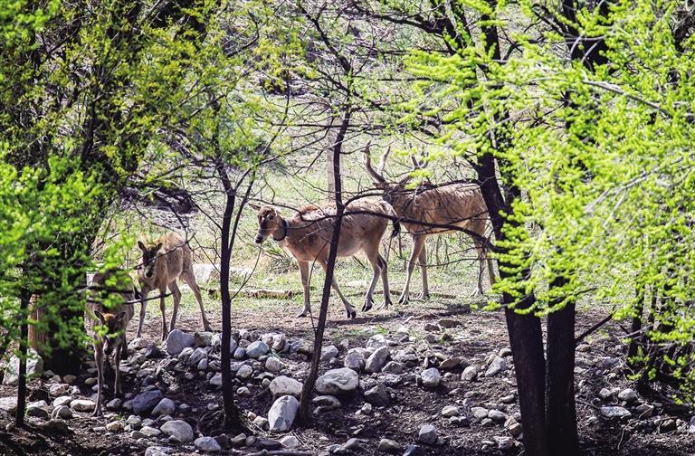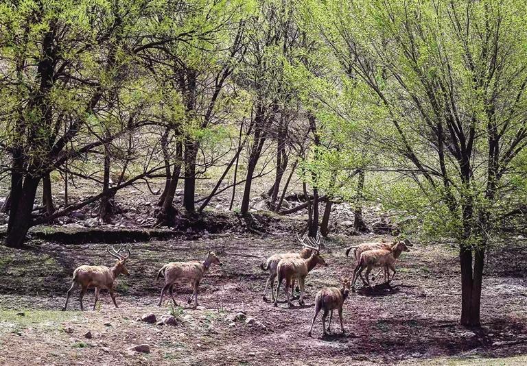 6月的内蒙古大青山国家级自然保护区(以下简称大青山保护区)草木初盛。在大青山保护区呼和浩特白石头沟内,一群麋鹿正悠闲地漫步于林间草地,时而低头觅食,时而昂首远眺,呦呦鹿鸣,野趣天成。