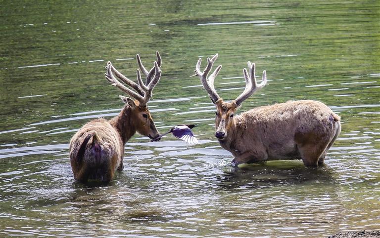 麋鹿对生态环境有着极高要求,它们在大青山保护区野外建群成功,不仅丰富了大青山保护区生物的多样性,也说明了大青山保护区生态环境持续向好。漫步白石头沟,清澈的溪流穿过森林,绿荫之下,鹿影绰绰。麋鹿的悠然姿态,是这片土地生态向好的真实写照。