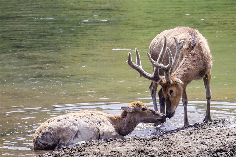 小麋鹿跟在妈妈身边